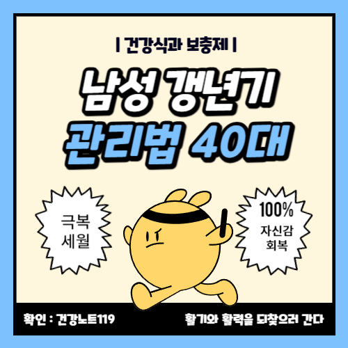 “갱년기” 하면 보통 여성만 떠오르지만, 사실 남성도 40대 이후부터 갱년기를 겪는다는 사실 알고 계셨나요? 직장과 가정에서 스트레스를 감당하느라 무기력, 피로, 집중력 저하를 느끼고 있다면 남성 갱년기를 의심해 볼 수 있습니다. 지금부터 40대 남성 갱년기 관리법과 건강식·보충제 추천을 정리해드립니다.